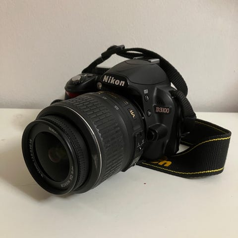 Nikon D3100 järjestelmäkamera. Sopii hyvin vaikka aloittelevalle valokuvaajalle. Kamera on hyvässä ja siistissä kunnossa. Mukaan myös Tamron- objektiivi. Tällä voit kuvata vähän kauempanakin olevia kohteita. Lisäksi laturi ja pari muistikorttia. Kamera ja muut kamppeet kulkevat hyvin mukana tulevassa laukussa.