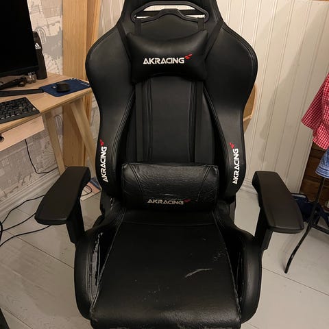 Käytetty, mutta hyvässä kunnossa oleva pelituoli. Kaikki mekaniikat toimii. Ainoa miinus on istuinosassa olevat "kulumat" jotka tulleet ajansaatossa.