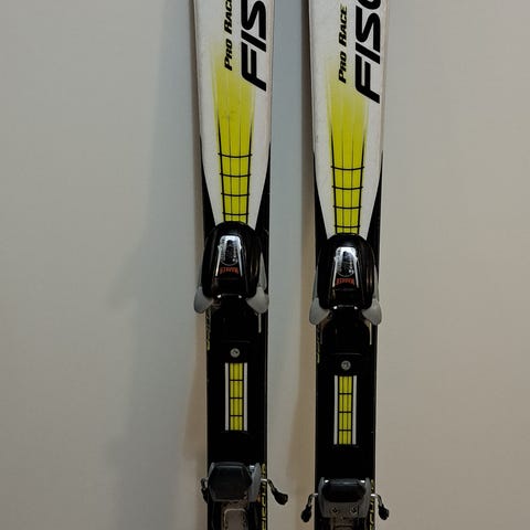 Fisherin hyväkuntoiset sukset Ficherin siteillä ja Excelin sauvat (toisesta sauvasta puuttuu sompa, huomioitu hinnassa).