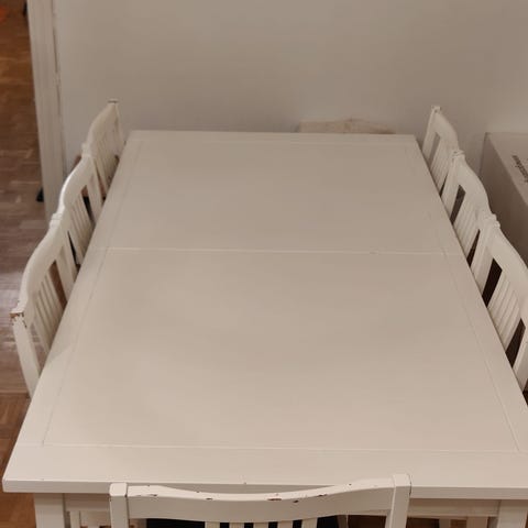 Jatkopala mukaan -saa pidennettyä tarpeen mukaan neljän hengen pöydästä kuuden hengen pöydäksi