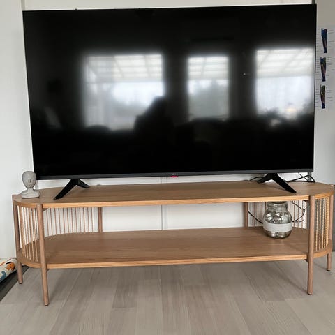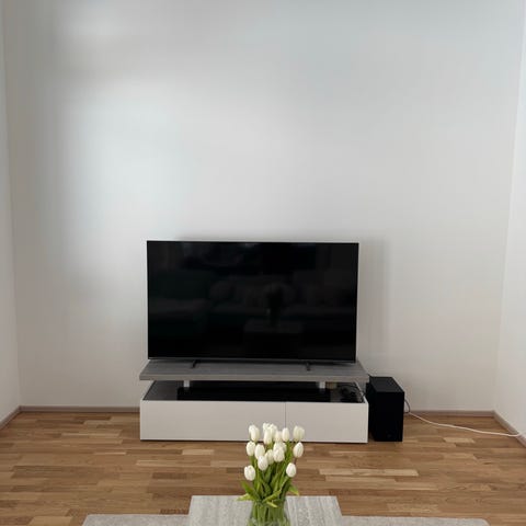 Vain vajaan vuoden käytössä ollut. Tason takana kaksi kolhua, eivät ole haitanneet käyttöä, kun ovat jääneet tv:n taakse piiloon. 😊
