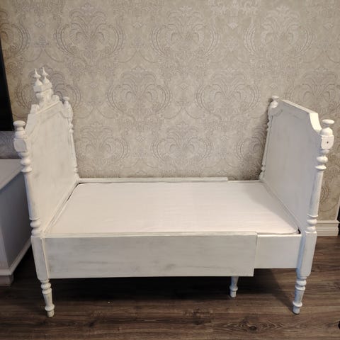 Lastensänky, voi tarvittaessa pidentää. Ruostetta, näkyy kuvissa.