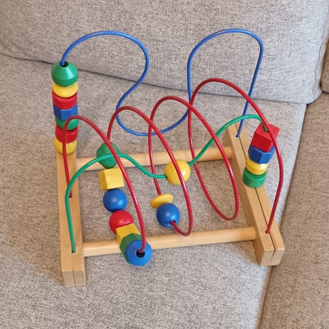 Myydään ikean helmien pujottelulelu uudelle leikkijälle. Haku kivikkokankaalta.
