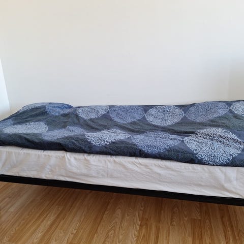 Kohtalaisessa kunnossa oleva Ikean puinen sohvasänky. On ehjä mutta terassilla kesällä ja syksyllä ollessaan kerännyt ilmeisesti kosteutta, joka näkyy pieninä home? pilkkuina. Nyt muuton alta pikaisesti pois jollekin kelpuuttavalle halvalla.