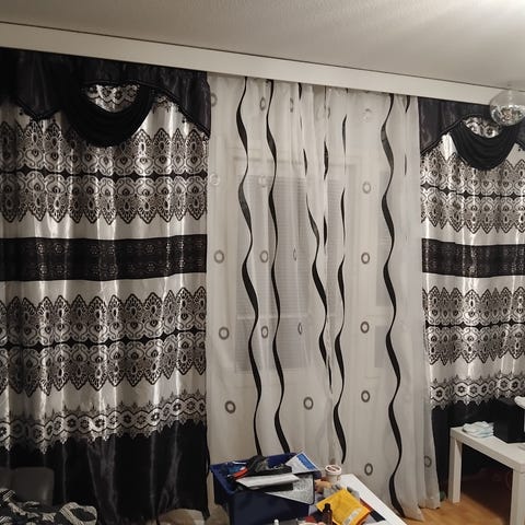 Kaunis verho kaksi osainen leveys1 yhdessä verho ylä osa noin 135cm yhden verho sivupituus noin 205cm sopii isompaakin ikkunaa haku Malmi
