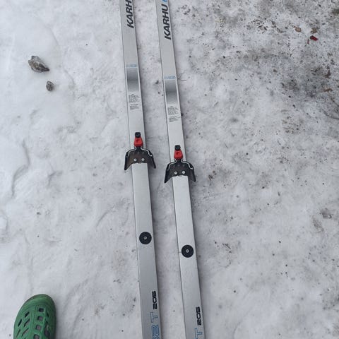 Perinteisen tyylin Salomonin murtomaahiihtosukset, Nanogrip pohjalla eli nollakelille. Hiihdetty muutaman kerran. Ei naarmuja pohjassa.