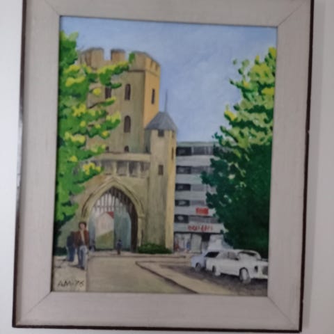 Maalaus kehystetty kaupunkinäkymä