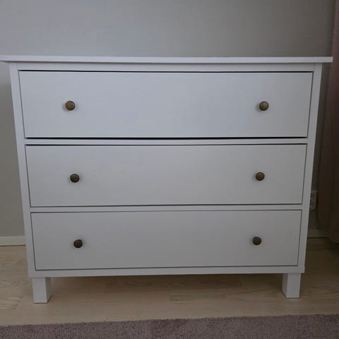 3/25 Jyskistä ostettu lipasto, joka myyntiin isomman tieltä. Ehjä ja todella siisti, laatikot toimivat hyvin.