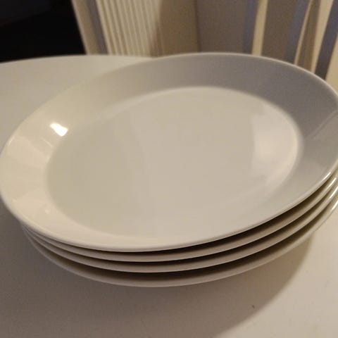 Myydään 4kpl Iittalan Teema -ruokalautasia. Yhdessä lautasessa kolhu, joka näkyy kuvissa ja huomioitu hinnassa!
