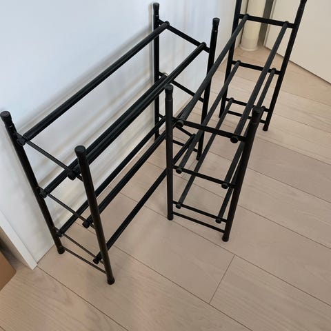 Hattuhylly, muuten hyvässä kunnossa, mutta yksi naulakko tappi puuttuu.