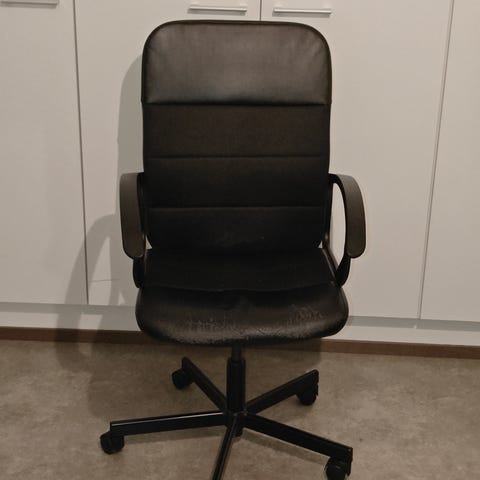 Korkeudensäätö toimii tökkien. Kuvan mukaisesti kaasujousen suojan sisällä paljon muovipölyä. Ala-asenossa käytyökelpoinen.