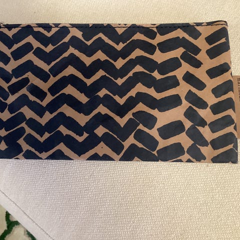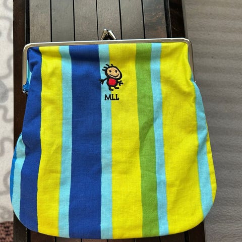 Tämä on Marimekko for Finnair Sahalaitaraita-kuvioinen pussukka. Tyhjä, ei sisällä mitään.