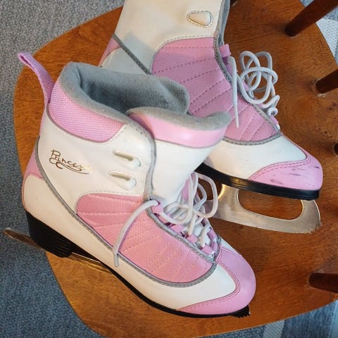 kauniit pinkki–valkoiset luistimet, koko 36-37.