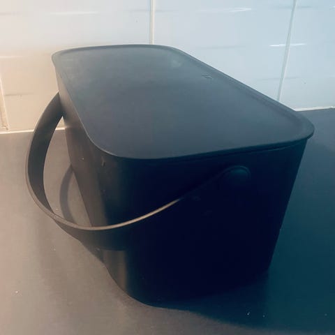 Myydään pieni, kannellinen biojäteastia. Väri vihreä/harmaa. Koko 22x16cm.