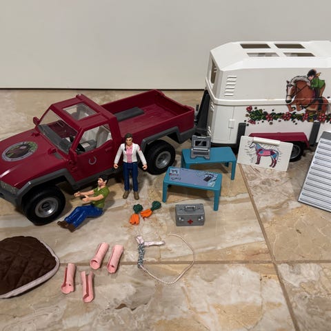 Mukaan tulee autoa ajava hahmo, auto ja traileri. Kuin uusi, ei kulumia