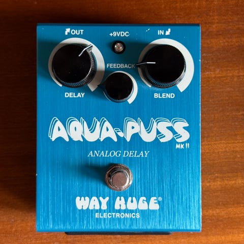Way Huge Aqua Puss MkII Delay - Erinomainen analoginen delay, joka vakiinnuttanut vuosien ajan paikkansa mm. John Mayerin pedaalilaudalla. Kunto hyvä, joskin pieniä jälkiä kyljissä. - 140€