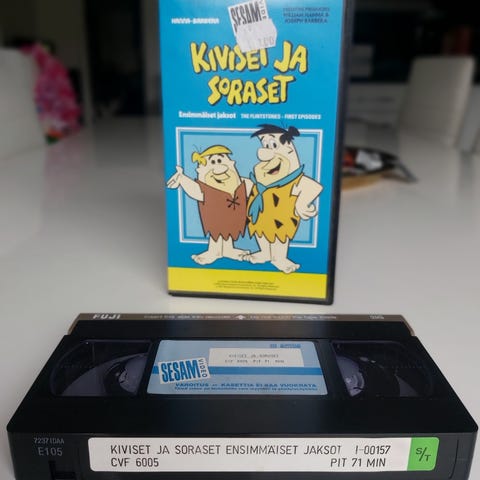 Kaksi läpi katsottua vhs kasettia yhdessä.