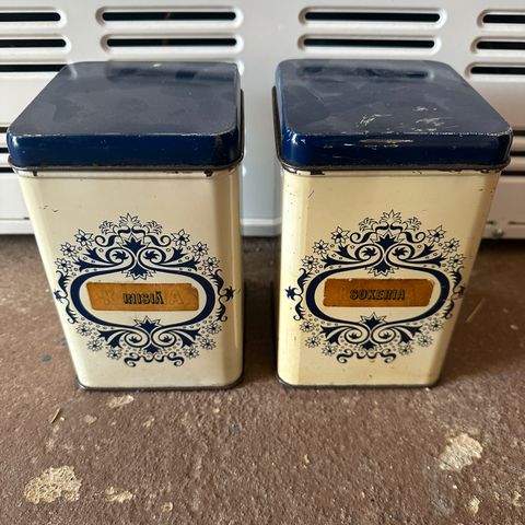 Siistissä kunnossa olevat eri kokoiset peltiset säilytysrasiat.
