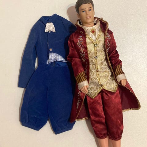 Ken is almost brand new and the clothes are all in great condition but note the blue jacket does have a stain.