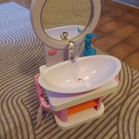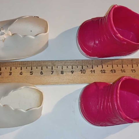 Suurimmaksi osaksi puisia, osa muovisia leikkiruokia. Puisissa jonkunverran leikinjälkeä ja pari korkkia puuttuu. Mukaan saa pari baby born nuken vaatetta halutessaan.