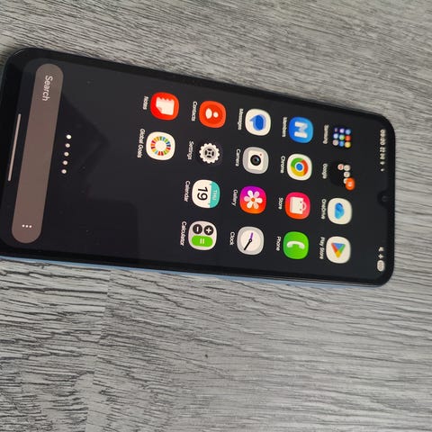 Näyttö on täysin ehjä ja puhelin on muutamia näytön naarmuja lukuunottamatta hyvässä kunnossa.