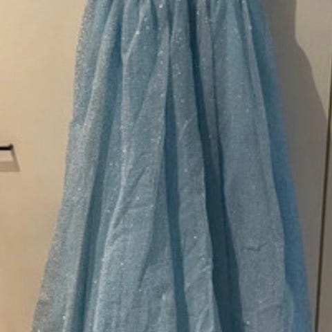 Zazabellasta ostettu ihana Petroolin sävyinen kimaltava röyhelö mekko. Kokolapussa lukee 44 mutta mielestäni noin L kokoa, käytän itse M-L kokoa ja oli juuri sopiva :) Selässä nyörit joiden avulla kokoa saa myös säädettyä. Mekosta tilattiin pidempi malli, olen 176cm pitkä ja tanssin matalapohjaisilla kengillä. Mekolla tanssittu yhdet vanhat ja on todella hyvässä kunnossa! Ovh ~550€. Pukupussin ja vannehameen saa mukana. Saa käydä sovittamassa, kysy lisää kuvia ja tietoja!💓