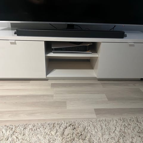 Täysin toimiva sähköinen korkeus säädettävä tv teline muistilla.