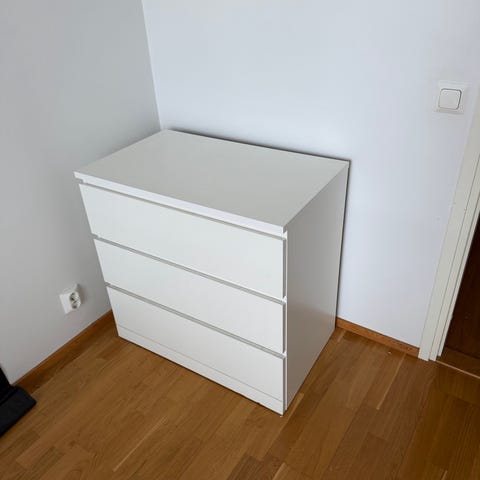 Ikea Malm Lipasto, 3 laatikkoa, valkoinen, 80x78 cm
