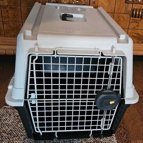 Muovinen lemmikkikuljetuslaatikko kissoille tai pienille koirille.
