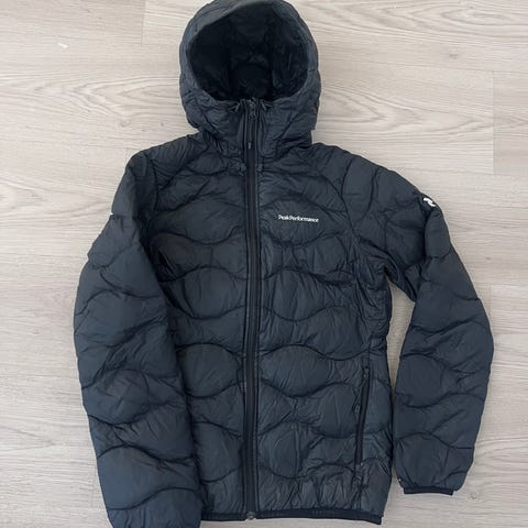 Myydään naisten musta Peak Performance Frost Down Hood kevytuntuvatakki kokoa M. Ostettu uutena useampi vuosi sitten. Käytetty, mutta edelleen ehjä ja hyväkuntoinen. Täyte 90% untuvaa ja 10% höyhentä. Vetoketjulliset taskut. Hupussa ja helmassa kiristysnauhat.