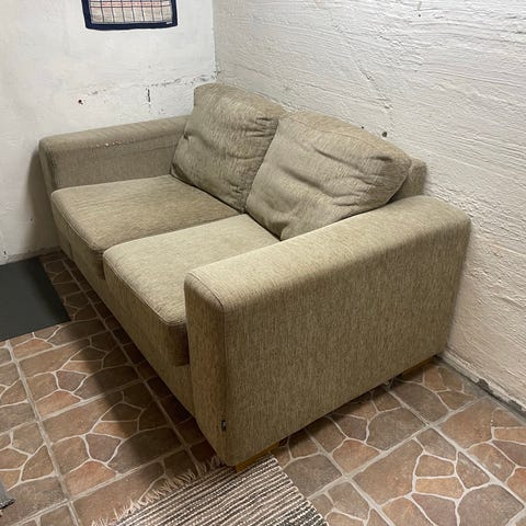 Perus siisti, mutta käytössä ollut. Väri beige. Mitat syvyys 90, leveys 215 istumakorkeus n 45. Myös kuljetus ostajalle mahdollinen.