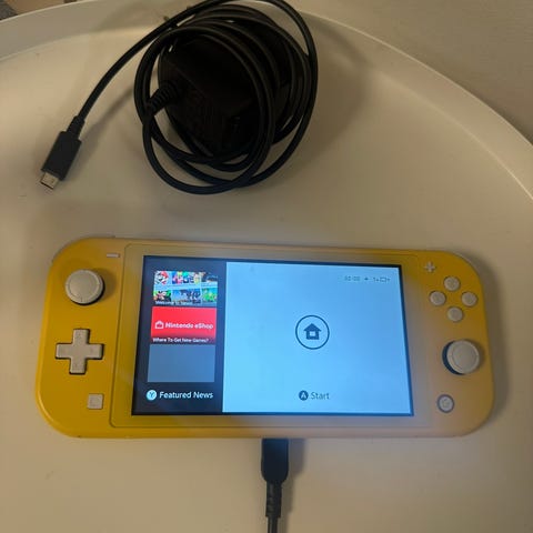 Mukana tulee telakka, Joy-Con ohjainpidike, laturi, HDMI-Kaapeli ja pelejä.