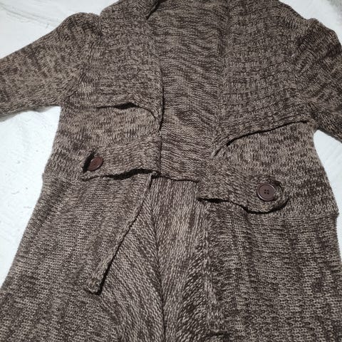 Naisten pitkä neuletakki koossa XL. Väriltään viinin punainen, etupuolella nappikiinnitys ja pitkät hihat ja sivusaumoissa 18cm pitkät halkiot. Sopii arkipukeutumiseen ja kerrospukeutumiseen. Siisti takki. Materiaali 50% villa 50% acryl