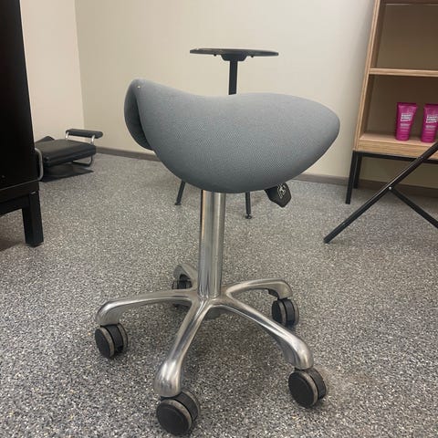 Myydään hyväkuntoinen ja laadukas Ergotekniikan satulatuoli. Tukeva ja kestävä rakenne. Säädettävä korkeus ja istuinkulma. Musta kangasverhoilu.