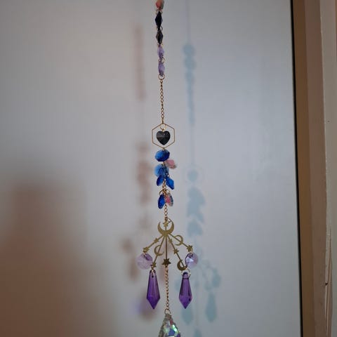 Aurinkosieppari, oikea väri unelma, sijoitetaan aurinkoiselle puolelle ikkunaan roikkumaan, aurinko heijastaa pieniä valopilkkuja seiniin ja kattoon kristalleista