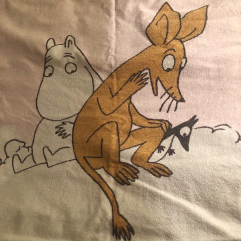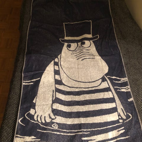 Kylpypyyhe Muumi-aiheella/poliisi, Finlayssonilta.
