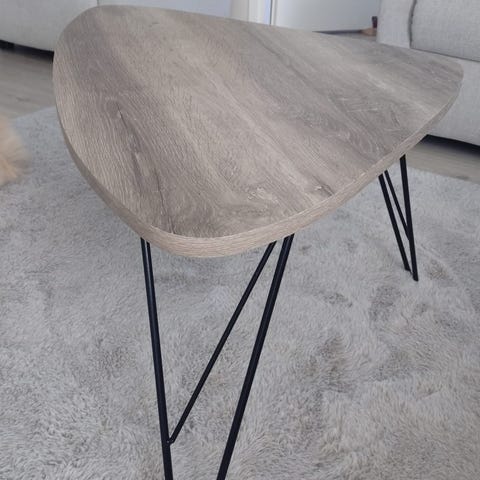 Moderni hyväkuntoinen matala sohvapöytä kahdella laatikolla ja syvennyksillä.