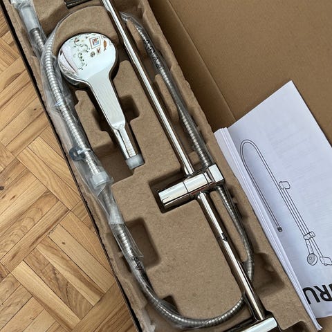 Seinäkiinnitteinen suihkusetti, jossa on käsisuihku, suihkutanko ja sekoittaja. Materiaalina pääosin kromattu metalli. Suihkutanko on korkeussäädettävä ja käsisuihku on letkulla varustettu. Soveltuu asennettavaksi kylpyhuoneen suihkunurkkaukseen tai ammeen yläpuolelle olemassa oleviin vesiliitäntöihin.