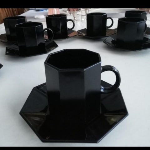 Arcoroc Octime kahviastiasto mustasta lasista. Setissä on 6 kahvikuppia ja 6 aluslautasta, joissa on kulmikas, oktagoni muotoilu. Astiat on valmistettu karkaistusta lasista ja ne soveltuvat kahvin ja teen tarjoiluun kotikäytössä tai kattauksissa. Väri on yhtenäinen musta ja tyyli on pelkistetty ja moderni. Nouto tai postitus.