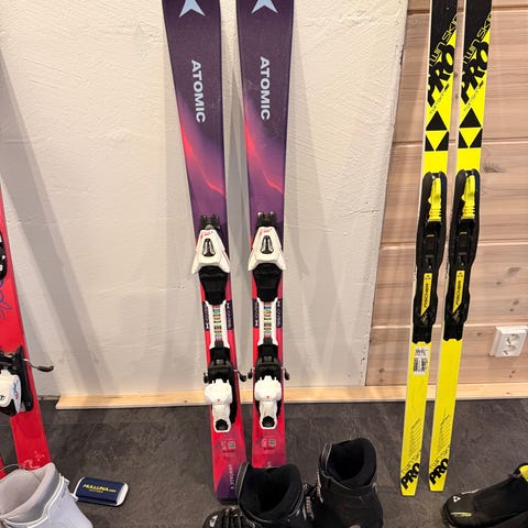Atomic 120 cm lasten laskettelusukset ja Salomon 23/23,5 monot + 2 x sauvat