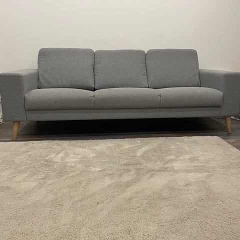 Myydään kolmen istuttava siisti ja tukeva sohva. Istuintyynyt eivät ole painuneet. Toisessa käsinojassa pienet kissan raapimisjäljet ja toisessa kissan raapimislauta jonka irrotan ennen myyntiä. Ei ole vuodesohva mutta yksi pieni ihminen voi nukkua jos ottaa selkätyynyt pois.