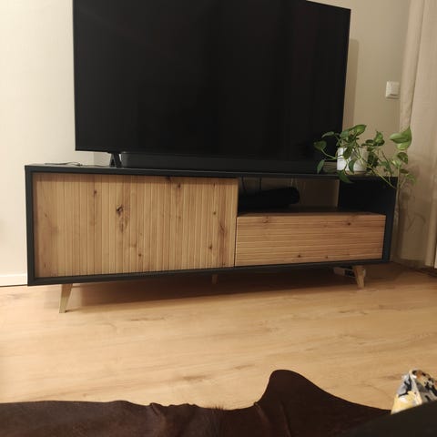 Moderni hyväkuntoinen Sotkan valkoinen tv-taso.