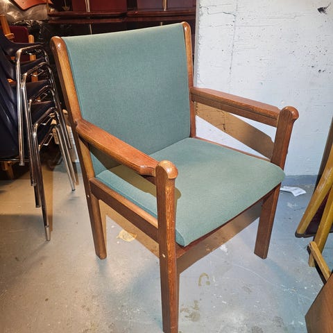 Kaksi kangaspäällysteistä harmaata tuolia. Toisesta tuolista puuttuu yksi tassu ja toisesta kaksi tassua jaloista. Toinen tuoli siis vähän keikkaa kun tasapainoa ei ole, toisessa tasapaino löytyy:)