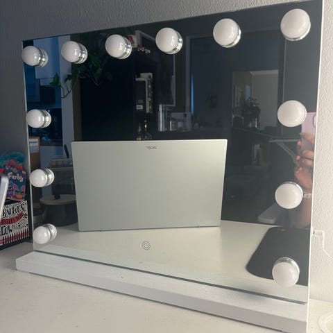 Myydään tarpeettomaksi jäänyt meikkipeili valoineen pöytineen kaikkineen.