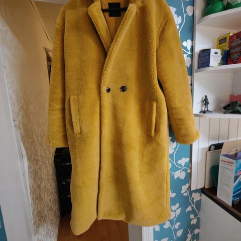 Esprit naisten talvitakki, koko L Väriltään keltainen.Materiaalina polyesteri. Takin malli on tikattu ja siinä on korkea kaulus sekä vetoketjukiinnitys edessä. Sopii arki- ja ulkokäyttöön viileään säähän.