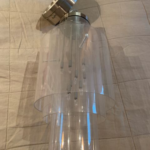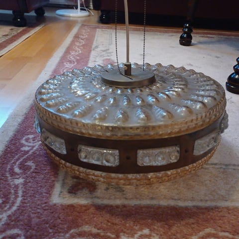 Vanha kattolamppu. Kattokuppi irrotuksessa hajonnut. Muuten ehjä ja toimiva.
