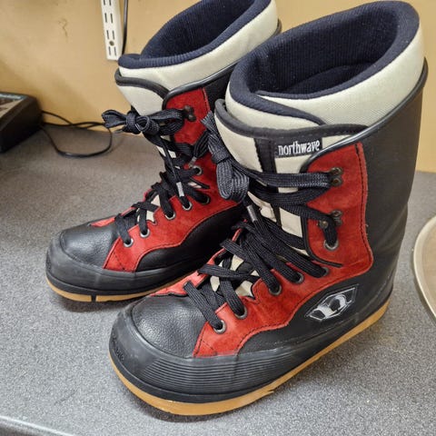 Kuvien lumilautakengät koko 46 ylimääräisenä.