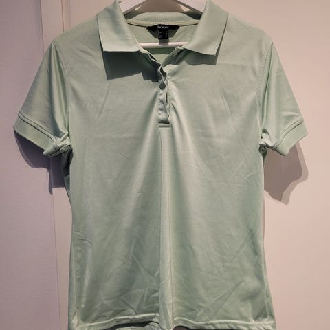 Pikeur pikeepaita, koko 40. Lyhythihainen malli, jossa vaaleansininen pääväri ja valkoinen kaulus. Edessä kirjailtu logo