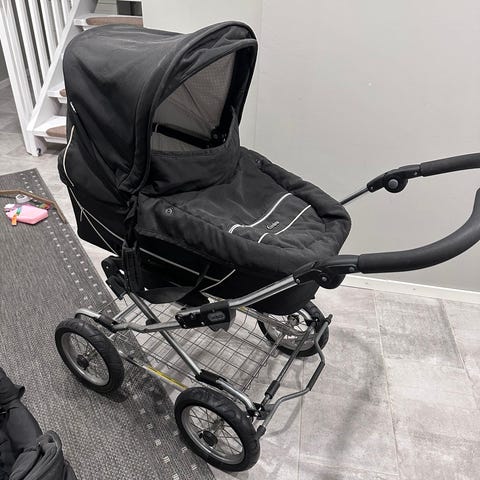 Emmaljunga lastenrattaat harmaalla kankaalla. Rattaissa on säädettävä työntöaisa, kuomu ja selkänoja, turvavyöt sekä tavarakori alla. Rungossa on neljä pyörää, joista etupyörät ovat pienemmät ja takapyörät suuremmat. Rattaat voidaan taittaa kasaan säilytystä ja kuljetusta varten. Soveltuvat lapsen kuljettamiseen arjen matkoilla ja ulkoilussa.