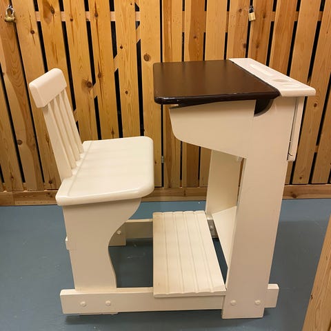 Puinen koulupulpetti kahdelle, sininen